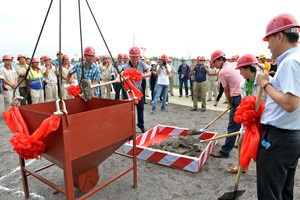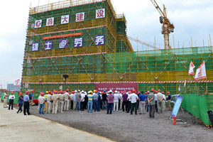 2016年9月10日上午,由集團青島公司承建的青島中學九年一貫制部初中部A區(qū)主體結(jié)構(gòu)在所有已開項目中率先實現(xiàn)封頂,上午8時10分舉行了封頂儀式。這一天,恰逢教師節(jié),在這個春華秋實、碩果累累的收獲季節(jié)里,昌大人用自己的方式向教師節(jié)獻上了一份厚禮。集團副總經(jīng)理閆鵬與參加封頂儀式的青島以及項目各方:青島市高新區(qū)黨工委委員、管委會副主任于慧霞,黨工委委員、管委會副主任呂濤,青島市高新區(qū)建設(shè)局局長蒲洪強,北京十一學校副校長、青島中學執(zhí)行校長、青島實驗學校校長秦建云,同濟大學建筑設(shè)計研究院項目負責人高增元等共同裝填封頂砼。青島市高新區(qū)管委會各部門、集團青島公司、安裝公司、裝飾幕墻公司、第二裝飾幕墻公司、第三裝飾幕墻公司以及青島中學項目各參建單位負責人、員工代表參加了封頂儀式。 青島中學項目總建筑面積近30萬平方米,包括中學部(含國際部)、九年一貫制部、幼兒園部三個主體建筑。其中,青島公司承建九年一貫制部,總建筑面積72074平米,于2016年4月19日正式開工建設(shè)。根據(jù)高新區(qū)管委會和建設(shè)局的需要,原457天的合同工期壓縮為180天 ,時間緊、任務重。青島公司自中標后,特別是在合同工期調(diào)整壓縮后,積極組織精兵強將,克服了工期緊迫、工程施工難度大、雨季施工及高溫酷暑等諸多困難,精心組織、嚴格管理,加強過程控制,保證了工程質(zhì)量和工期。經(jīng)過全體員工的奮力拼搏,主體于9月10日這天率先封頂,為工程的按期交付使用奠定了堅實基礎(chǔ)。青島公司在青島市場彰顯了昌大作風。 集團承建部分率先封頂,僅僅是取得了階段性勝利,項目后續(xù)工程量大,施工時間緊迫,還將面臨更加艱巨的考驗。青島公司將繼續(xù)秉承正氣做人、銳氣做事、知難而進、團結(jié)協(xié)作的昌大作風,克服困難,保安全、保質(zhì)量、保進度,以扎實的工作作風,以匠人的精神,干出一項優(yōu)質(zhì)的工程,確保工程按期交付使用,向業(yè)主提交一份滿意的答卷。