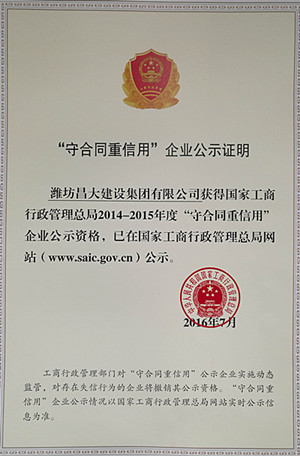 集團獲國家級“守合同重信用企業(yè)”公示資格