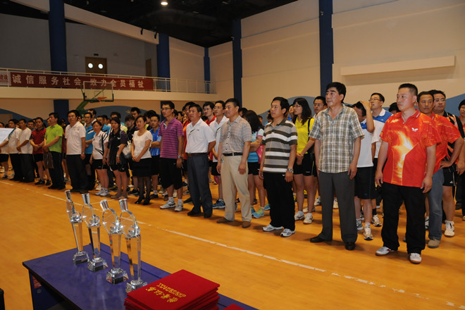 第二名:第一分公司 劉東強(qiáng);第三名:第二分公司任其富、承包分公司孫旭光;獲得女子單打前三名的員工是:第一名:集團(tuán)總部 王云芳;第二名:第二分公司 劉玉梅;第三名:第一分公司夏翠萍、第七分公司劉娟;另外,在男子團(tuán)體比賽中,進(jìn)入前8名的還有承包分公司、安裝分公司、裝飾分公司和勞務(wù)管理處;進(jìn)入男單前8名的還有集團(tuán)總部的陳守合、勞務(wù)管理處的鄭國(guó)光、第七分公司的張明起和第八分公司的李杰。集團(tuán)公司對(duì)此次比賽高度重視,滕忠斌、李坤明、穆乃杰等高管層領(lǐng)導(dǎo)還多次到現(xiàn)場(chǎng)察看賽事組織情況和比賽。給賽事組織以極大的支持。在兩天的比賽中,緊張激烈卻又和諧盈盈。所有參賽單位大都按照要求統(tǒng)一了比賽服裝,派出領(lǐng)隊(duì),選定隊(duì)長(zhǎng),團(tuán)隊(duì)標(biāo)志更加突擊。很多參賽單位在比賽期間給予了自己球隊(duì)極大的后勤支持和多方鼓勵(lì)。多方支持,共同確保了本次比賽的圓滿成功。