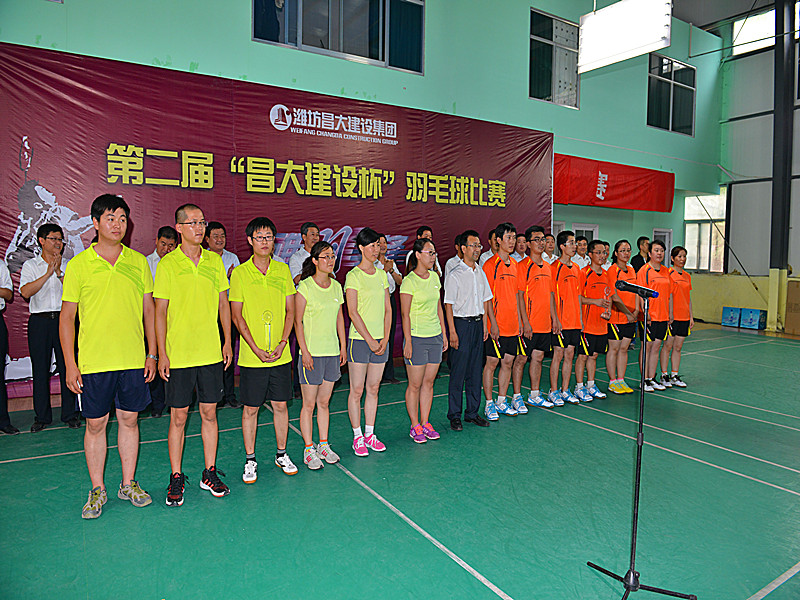 2014年6月28日至29日,集團(tuán)第二屆“昌大建設(shè)杯”羽毛球比賽在濰坊李寧•浩霖羽毛球俱樂(lè)部舉行。來(lái)自集團(tuán)基層單位的16個(gè)團(tuán)體代表隊(duì)和51名單打選手參加了本屆比賽。集團(tuán)高管層領(lǐng)導(dǎo)滕忠斌、李坤明、穆乃杰、張學(xué)智、劉雁冰等分別出席開(kāi)、閉式活動(dòng)。