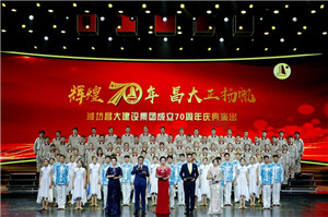 櫛風(fēng)沐雨砥礪行,春華秋實滿庭芳。2019年10月16日晚,慶祝集團70華誕文藝晚會在濰坊文化藝術(shù)中心大劇院隆重上演。 集團高管層領(lǐng)導(dǎo)徐鵬強、朱九洲、穆乃杰、姜建魯、閆鵬、房海、劉雁冰、張學(xué)智、吳杰出席。黨委書記、董事長徐鵬強代表領(lǐng)導(dǎo)班子致辭,表達(dá)了對黨的感恩之情。感謝各級政府和社會各界的大力支持,感謝一代一代昌大人的砥礪前行和奮斗,感謝昌大員工家屬的無私奉獻(xiàn)。集團技術(shù)負(fù)責(zé)人、商務(wù)經(jīng)理及以上骨干人員現(xiàn)場觀看演出。 集團特別感謝濰坊市歷屆黨委和政府一直以來對昌大的關(guān)愛和支持,特邀幫助昌大走出困境實現(xiàn)良性發(fā)展的黃濰連、劉偉、潘強等市里的老領(lǐng)導(dǎo)代表,特邀集團合資、合作等有關(guān)方面的代表,特邀集團改制前擔(dān)任過集團正職的部分老領(lǐng)導(dǎo)以及改制后擔(dān)任過集團領(lǐng)導(dǎo)后來退下來的老領(lǐng)導(dǎo),特邀企業(yè)發(fā)展之初老領(lǐng)導(dǎo)的家屬代表,特邀集團榮獲省和全國勞動模范代表,特邀集團基層單位經(jīng)理助理、集團總部全體、集團中層以上人員的家屬代表出席觀看文藝演出。 主題為“輝煌七十年?昌大正揚帆”的慶典晚會,在一曲《在燦爛的陽光下》歌舞中拉開帷幕。晚會總體分為“致敬昨天?致敬今天?致敬未來”三個篇章,共十七個節(jié)目。無論是歌頌昌大人的歌曲《堅守》,還是謳歌關(guān)心昌大各界的相聲《非常嘉賓》,無論是《流光溢彩》的城市脈動,還是訴說過去的《往事只能回味》,無論是描寫建筑人的《我們和城市在一起》,還是表現(xiàn)昌大建設(shè)鐵軍精神的《城市筋骨》,無論是音詩畫般的《昌大一家人》,還是表現(xiàn)昌大員工情懷的《多想在平庸的生活擁抱你》,昌大人都在《致敬昨天》、《致敬今天》、《致敬未來》朗讀聲中盡情釋懷。昌大七十年,我們在《萬紫千紅分外嬌》的環(huán)境中奮發(fā),我們在《我和我的祖國》歌聲中與共和國一起成長。70年的奮斗,我們凝聚了《善建者的力量》。 昌大輝煌七十年,我們用頒發(fā)《昌大建設(shè)七十年》一書的隆重禮儀,揭開昌大歷史那頁頁篇章、續(xù)寫未來的美好與輝煌。 我們禮贊新中國七十年壯麗篇章;我們禮贊昌大七十年的美麗詩篇。七十年,我們感恩黨的陽光沐?。晃覀兏兄x社會各界支持;我們感激昌大歷代員工;我們感慨昌大歷久彌新。 晚會讓昌大更加凝聚起了邁向新時代的力量,吹響了百年昌大的號角,讓我們“團結(jié)奮斗,做新時代的建設(shè)者”! 晚會由濰坊電視臺內(nèi)專業(yè)人士執(zhí)導(dǎo)。濰坊電視臺、濰坊人民廣播電臺的嘉賓參與晚會主持和有關(guān)節(jié)目演出。 晚會現(xiàn)場,濰坊新聞網(wǎng)進(jìn)行了現(xiàn)場直播,半島網(wǎng)、今日頭條、騰訊視頻、優(yōu)酷、搜狐、愛奇藝、第一視頻、天天快報等進(jìn)行了視頻轉(zhuǎn)播和錄播;大眾網(wǎng)濰坊、半島網(wǎng)、今日頭條、天天快報、光新聞、濰坊早讀、濰坊日報、濰坊晚報等持續(xù)進(jìn)行文字播報和轉(zhuǎn)發(fā)。 慶祝集團七十華誕的大型活動,集團高管層領(lǐng)導(dǎo)正確決策和運籌,各活動團隊圍繞目標(biāo)和中心任務(wù)全力推進(jìn)、團結(jié)協(xié)作,順利完成各項活動,達(dá)到了通過活動凝聚企業(yè)內(nèi)生動力、提升昌大品牌社會影響力、激勵廣大青年員工為未來而奮發(fā)的目的。在此,集團向所有參與活動的單位和個人表示感謝!