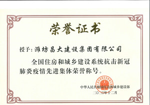 集團(tuán)榮獲全國(guó)住建系統(tǒng)抗擊新冠肺炎疫情先進(jìn)集體榮譽(yù)稱號(hào)
