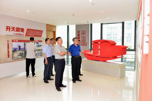 指導組還參觀了集團辦公樓二樓正在建設中的慶祝中國共產(chǎn)黨成立100周年紅色教育展廊并提出寶貴意見。