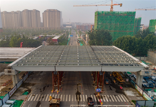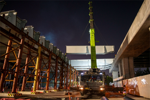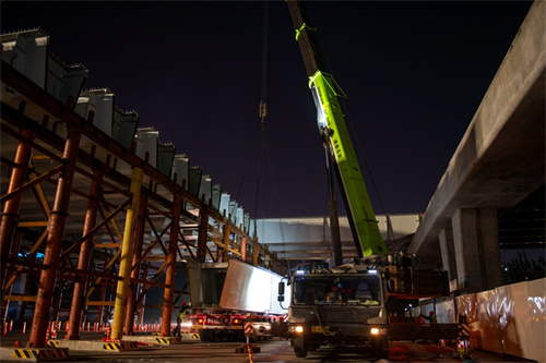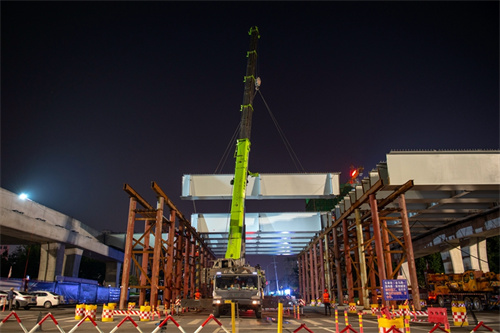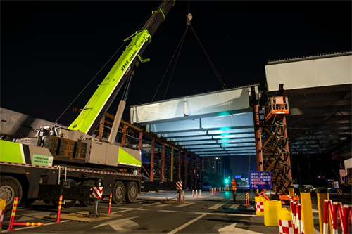 奮戰(zhàn)兩個晚上完成路口鋼箱梁吊裝為市民提供最大便捷——集團(tuán)寶通街快速路東方路、金馬路路口鋼箱梁吊裝完成