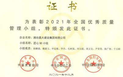 由集團機施公司匠心QC小組編寫的成果《施工升降機新型電纜臂架的研制》,經(jīng)初賽、復賽和決賽,在榮獲特等獎后被推薦至中國質量協(xié)會代表建筑行業(yè)作進一步的競賽交流,該匠心QC小組也被中國質量協(xié)會、中華全國總工會、中華全國婦女聯(lián)合會評選為2021年全國優(yōu)秀質量管理小組,代表了建筑行業(yè)質量管理小組活動的最高水平。