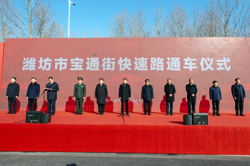 公元2022年1月1日上午,迎著新年第一縷陽光,濰坊這個蘊(yùn)藏著古老文明而又展現(xiàn)新時代蓬勃?dú)庀⒌娘L(fēng)箏之都開啟了一年全新的征程。和煦的冬日暖陽沐浴著一群群奮斗的人們的笑臉。作為建設(shè)者的我們則在這一天又見證了一個光榮時刻的到來,濰坊市委、市政府為濰坊城區(qū)第一條快速路——寶通街高架快速路舉行隆重而簡約的開通慶典。