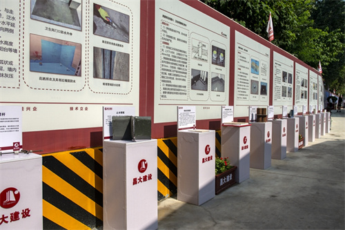 觀摩會現(xiàn)場,項目部人員結(jié)合現(xiàn)場樣板,對地下室、外墻、屋面及三小間防水做法和具體施工工藝向觀摩領(lǐng)導(dǎo)和嘉賓進行了詳細(xì)講解。對于該項目的樣板做法,省住建廳和市級住建部門的領(lǐng)導(dǎo)與專家均給予了高度評價,并已掛省廳網(wǎng)站全省云觀摩,同時在全市范圍推廣應(yīng)用。