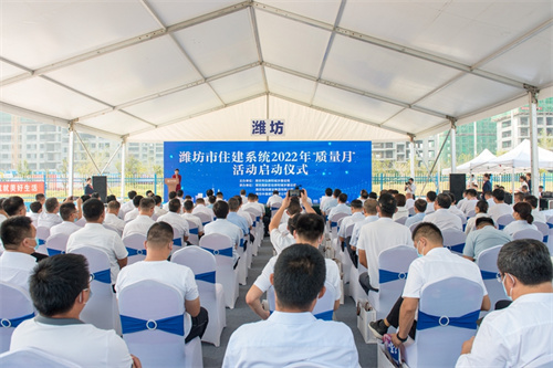 2022年9月1日上午,濰坊全市住建系統(tǒng)2022年“質(zhì)量月”活動在濰坊市東方名著項(xiàng)目現(xiàn)場舉行啟動儀式,市住建局黨組書記、局長鐘光文出席活動,就本次活動提出相關(guān)要求,并與嘉賓一同按下開啟按鍵,拉開了2022年濰坊市“質(zhì)量月”活動序幕。市住建局黨組成員、建筑業(yè)發(fā)展服務(wù)中心主任許增賢出席活動。集團(tuán)公司總裁朱九洲出席啟動儀式并代表施工企業(yè)作表態(tài)發(fā)言。集團(tuán)公司總工程師房海赴臨沂主會場參加活動并接受2021年度優(yōu)質(zhì)結(jié)構(gòu)獎頒獎。 在今天濰坊“質(zhì)量月”活動啟動儀式上,與會人員在現(xiàn)場通過網(wǎng)絡(luò)觀看了全省在臨沂主會場,主題為“推動質(zhì)量變革創(chuàng)新、促進(jìn)質(zhì)量強(qiáng)國建設(shè)、建設(shè)品質(zhì)工程、筑就美好生活”的質(zhì)量月活動啟動儀式。在主會場儀式上,有主會場當(dāng)?shù)仡I(lǐng)導(dǎo)和省廳有關(guān)領(lǐng)導(dǎo)的致辭講話、有部署全省住建系統(tǒng)質(zhì)量月活動安排、觀看《匠心筑夢質(zhì)享未來》工程質(zhì)量提升成果專題片、通報(bào)山東省近十年?duì)巹?chuàng)魯班獎和國家優(yōu)質(zhì)工程獎情況、為2021年優(yōu)質(zhì)結(jié)構(gòu)獎代表頒發(fā)證書、為“天元大工匠”代表頒發(fā)證書,建設(shè)、施工、勘察、設(shè)計(jì)、監(jiān)理、檢測等行業(yè)代表宣讀關(guān)于落實(shí)工程質(zhì)量的倡議書、各地市質(zhì)量提升成果展示等等。在濰坊啟動儀式上,項(xiàng)目建設(shè)單位、總承包施工企業(yè)和監(jiān)理企業(yè)代表作了表態(tài)發(fā)言。 濰坊各縣市、市屬各開發(fā)區(qū)住建局局長、建筑業(yè)中心主任或質(zhì)量安全服務(wù)站站長;中心城區(qū)(奎文、濰城、坊子、寒亭、高新)監(jiān)管機(jī)構(gòu)質(zhì)量監(jiān)督人員代表;高新區(qū)工程項(xiàng)目建設(shè)單位、施工單位、監(jiān)理單位代表 參加會議。 據(jù)悉,今年9月是全國第45個(gè)質(zhì)量月。 本次活動還是加強(qiáng)了疫情管控,所有參會人員在近14天均不得途經(jīng)中高風(fēng)險(xiǎn)地區(qū)和必須提供48小時(shí)核酸陰性證明。