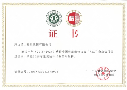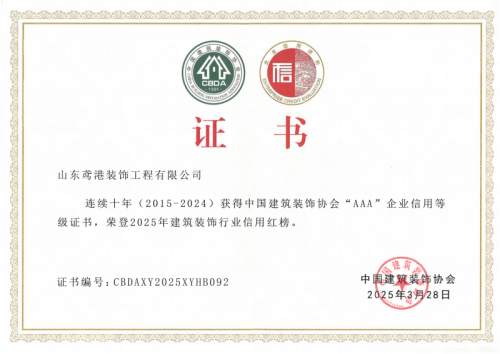 2025年3月28日,中國(guó)建筑裝飾協(xié)會(huì)在武漢召開(kāi)了首屆大國(guó)裝飾可持續(xù)發(fā)展大會(huì)。會(huì)上發(fā)布了建筑裝飾行業(yè)信用建設(shè)十年發(fā)展報(bào)告,公布了連續(xù)十年(2015-2024)榮獲中國(guó)建筑裝飾協(xié)會(huì)AAA信用等級(jí)企業(yè)名單及2025年度建筑裝飾行業(yè)信用紅榜獲獎(jiǎng)名單,并頒發(fā)了榮譽(yù)證書(shū)。