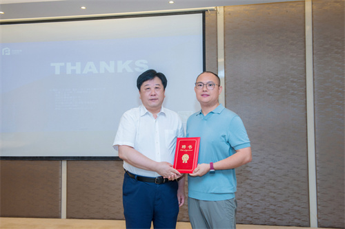 論壇期間,集團公司特聘蘇州方石科技有限公司副總經(jīng)理朱海廷為集團首席智能建造專家并由總裁朱九洲為其頒發(fā)了聘書。